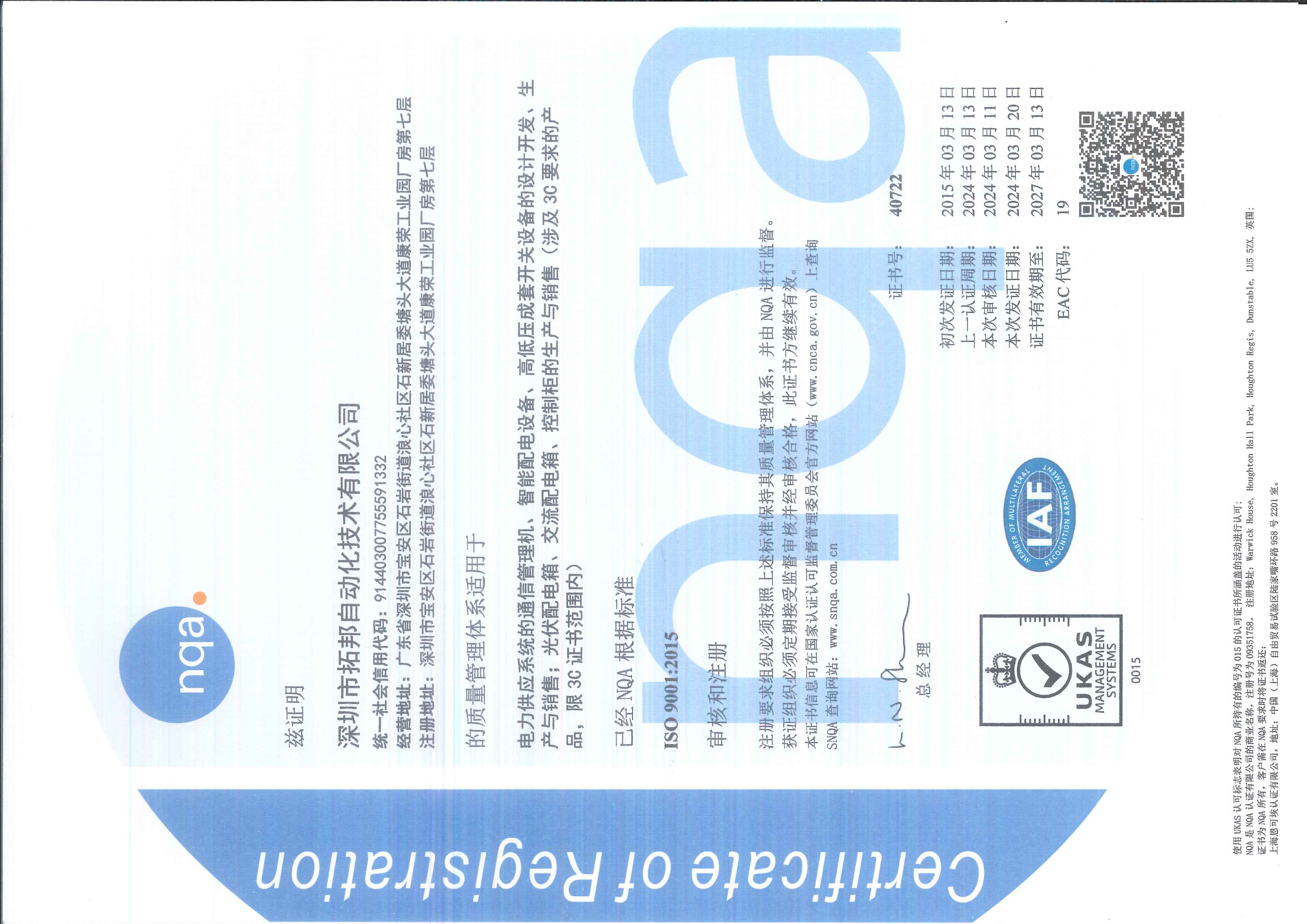公司擁有《建筑機電安裝工程專業(yè)承包叁級》、《電力工程施工總承包叁級》、《承裝(修、試)電力設(shè)施許可證四級》、《安全生產(chǎn)許可證》、成套3C認(rèn)證等資質(zhì).公司先后通過了QC080000、ISO9001、ISO14001、OHSAS18001等管理體系認(rèn)證,并借鑒了TS16949管理體系,2005年以來,公司在國內(nèi)同行業(yè)率先成功完成了RoHS、REACH、WEEE等歐盟綠色指令的達(dá)標(biāo)工作。