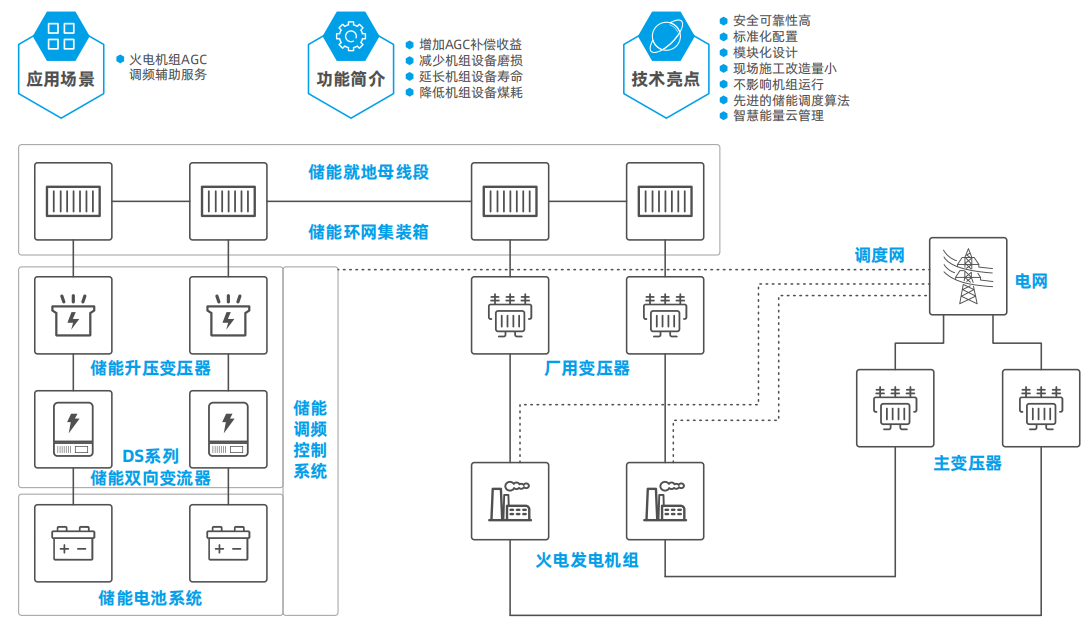 火電調(diào)頻速度慢,用電池儲能技術(shù)所具有快速精準的響應能力來參與電網(wǎng)的AGC調(diào)頻輔助服務,從而改善火電機組參與AGC調(diào)頻指標,消除AGC調(diào)頻考核,獲取電網(wǎng)輔助服務獎勵。